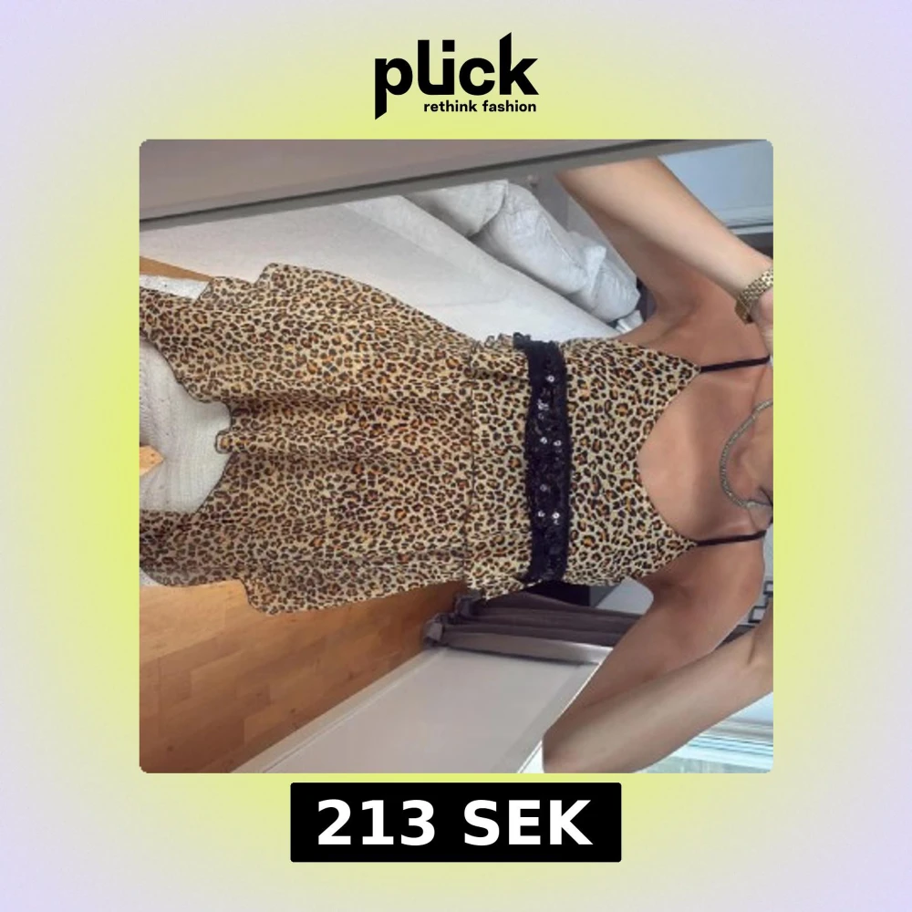 Snygg linne med leopardmönster och tunna axelband. Linnet har en svart spets- och paljettdetalj i midjan som ger extra edge. Fladdrigt tyg och figurnära upptill, perfekt för dig som vill sticka ut.