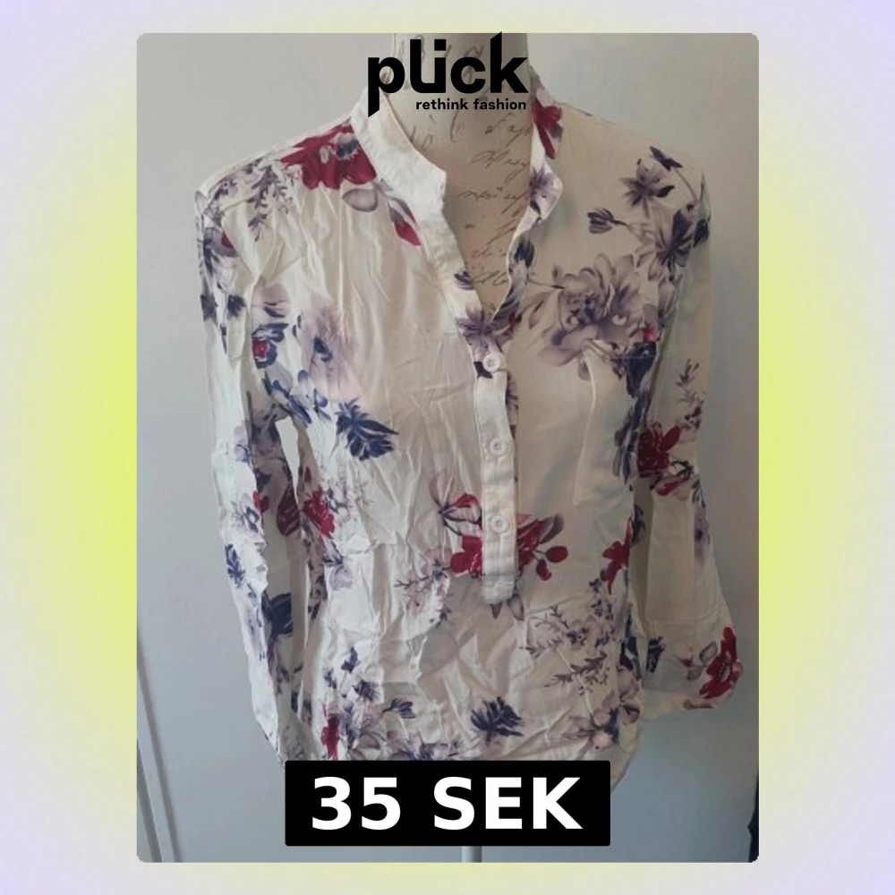 Blus med vita botten blå/röd/lila blommor. Blus i viskos. Storlek satt som m men är mer en smal.