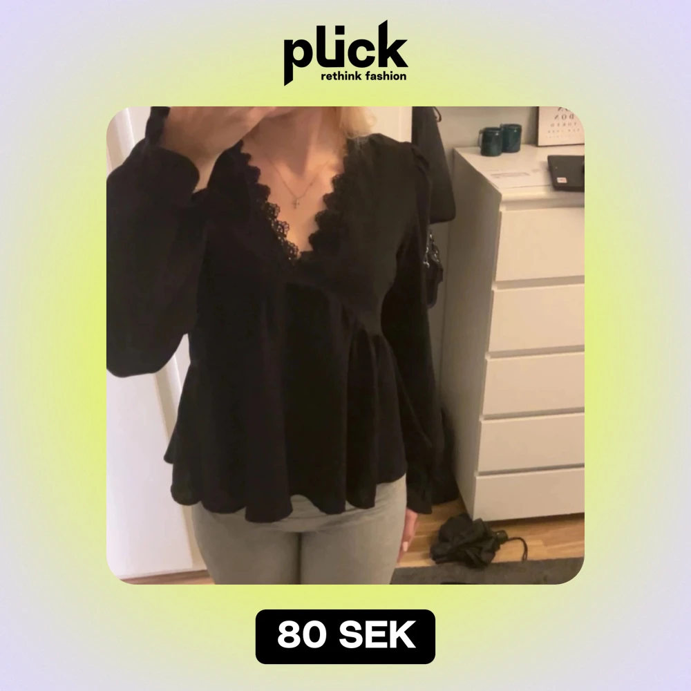 Säljer min svarta blus med puffärmar och volang nedtill eftersom att den är för stor och inte kommer till användning❣️pris kan diskuteras!!