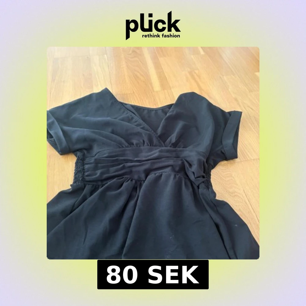 Svart blus från SHEIN med omlott framtill, v-ringning och bred smock i midjan. Blusen har korta ärmar och är gjord i ett lätt, mjukt polyestertyg. Perfekt för dig som gillar en enkel men snygg look. Jättesnygg till både fester och vardagligt!