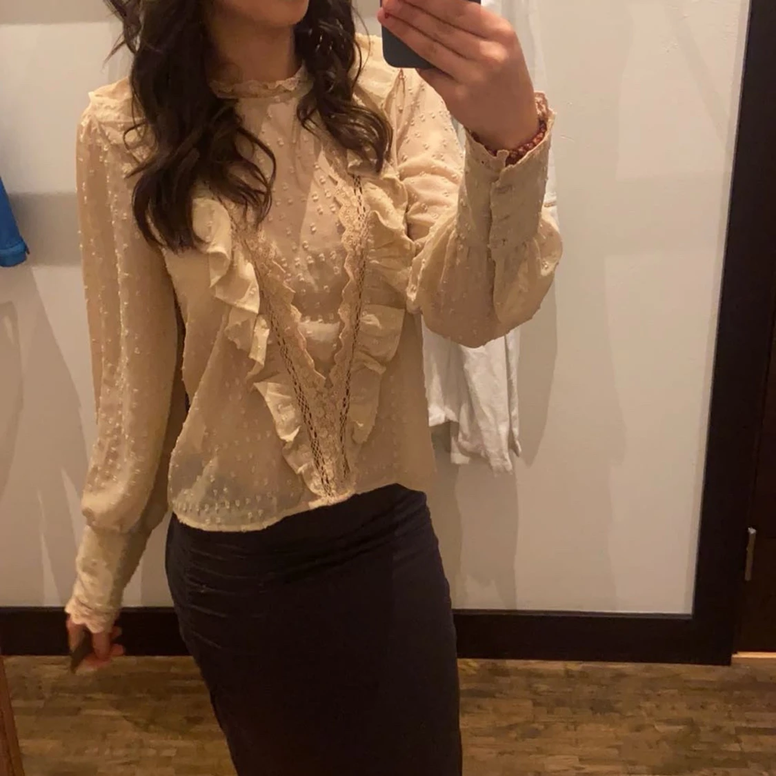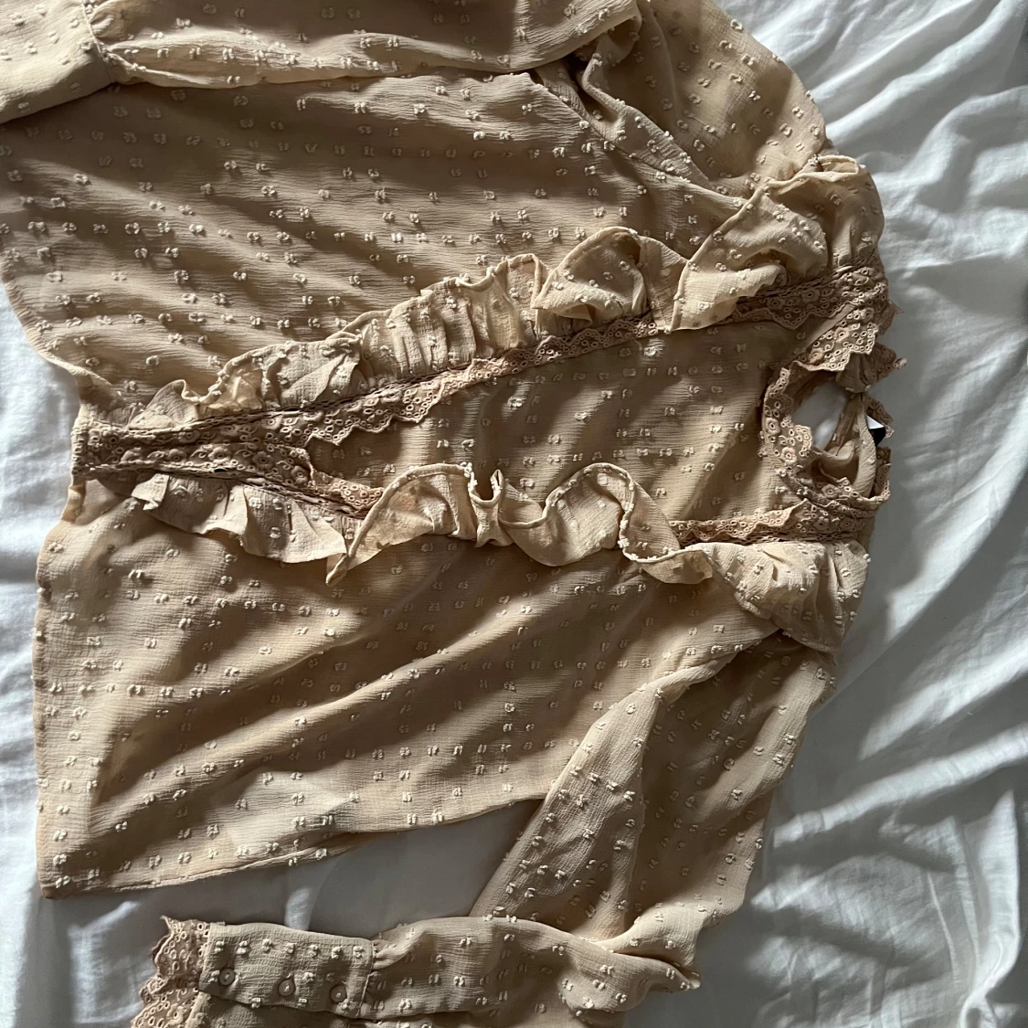 JĂ€tte fin beig blus med en fin design đ„°