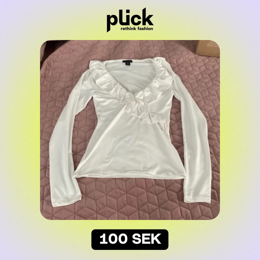Vit långärmad tröja med volanger runt halsen, från yorker nypris: runt 150