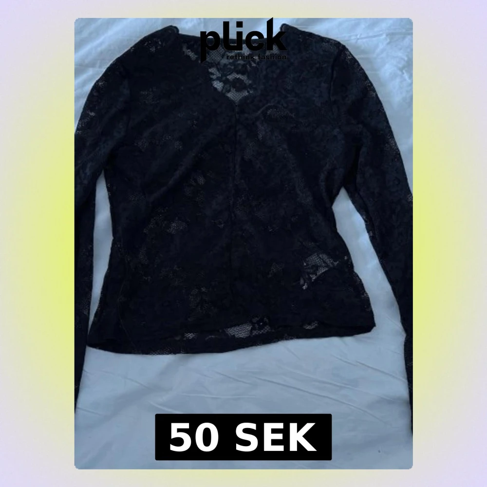 Snygg svart spetsblus med lång ärm och v-ringad hals. Blusen är genombruten i spetsmaterial och har en feminin, figurnära passform. Perfekt att styla med jeans eller kjol för en trendig look.