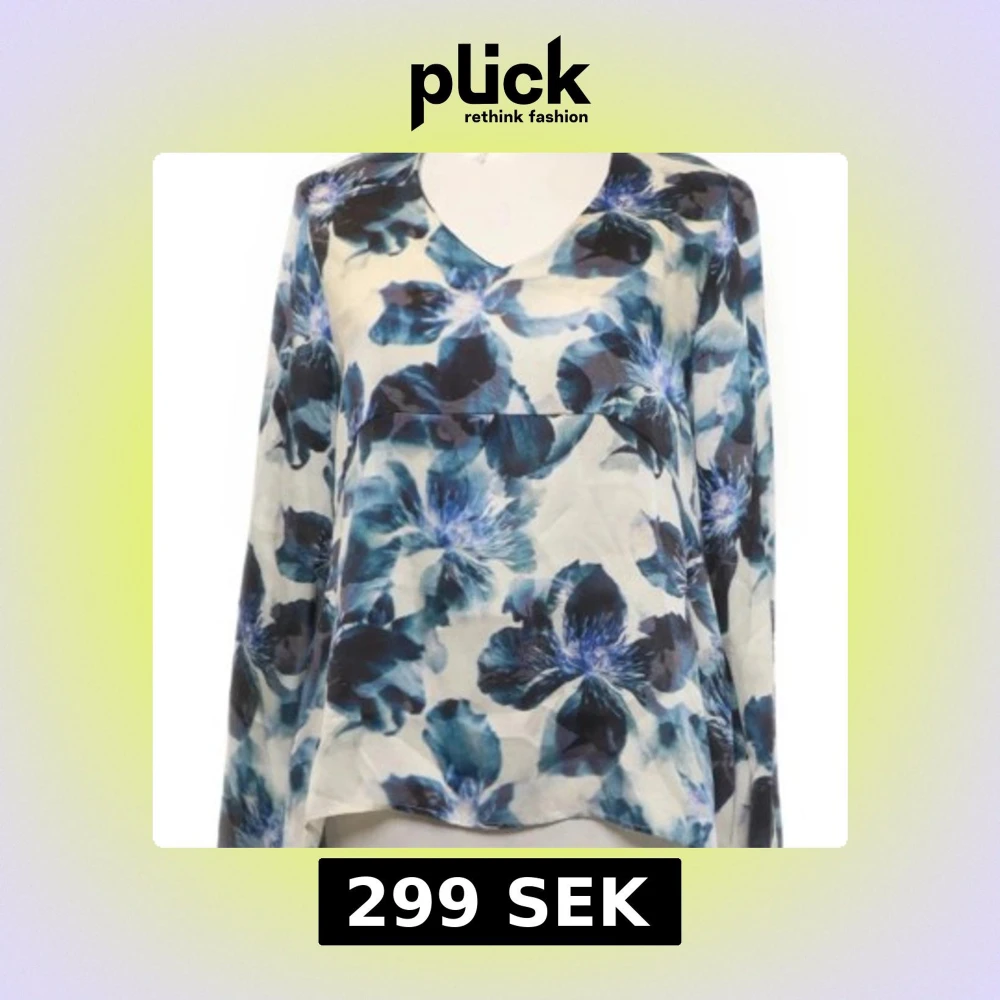Säljer en vacker blommig blus från Modes Stockholm i SIDEN i storlek S. Blusen har ett blått och svart blommönster på en ljus bakgrund och är långärmad med en v-ringad hals. Perfekt för att ge en färgklick till din garderob!