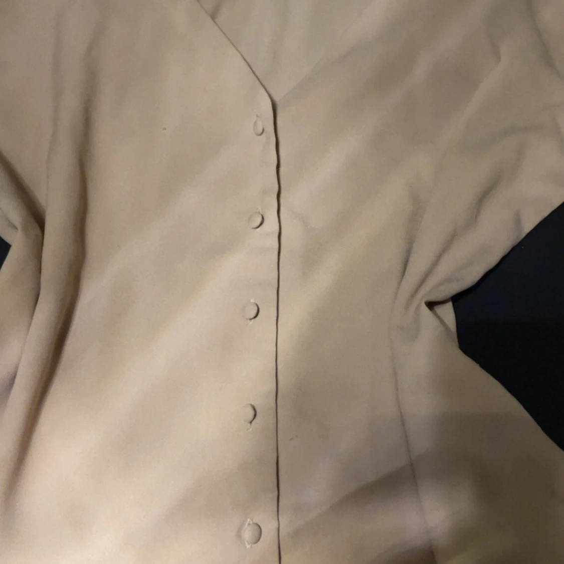 Stilren beige Blus från Even&Odd med v-ringning och klädda knappar framtill. Mjuk känsla i tyget och enkel design som ger en clean look. Perfekt för dig som gillar minimalistiskt mode.