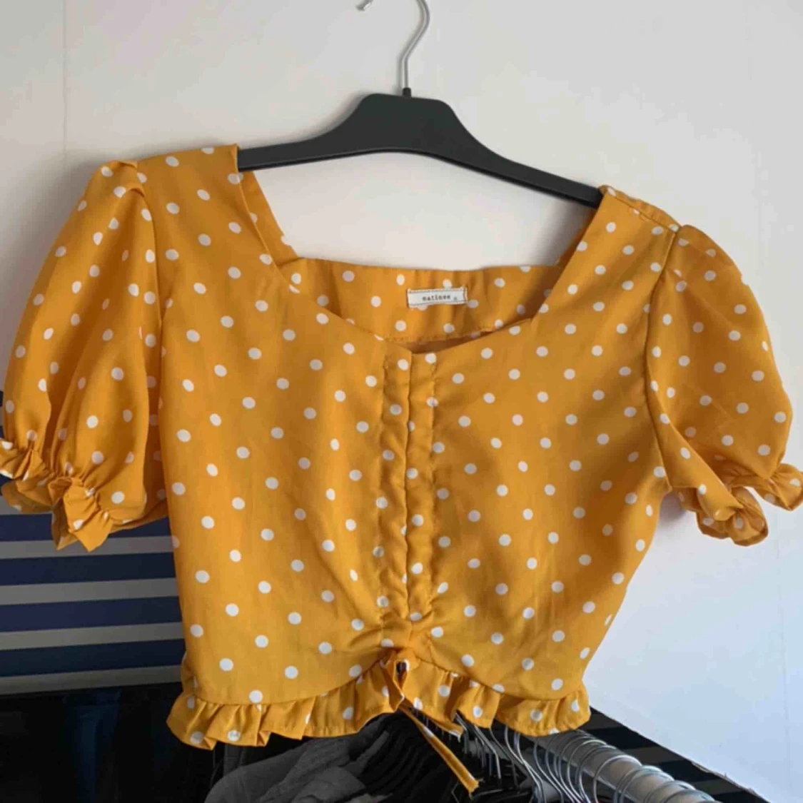 En söt blus. Någons slags knytning fram.💗 Frakt tillkommer
