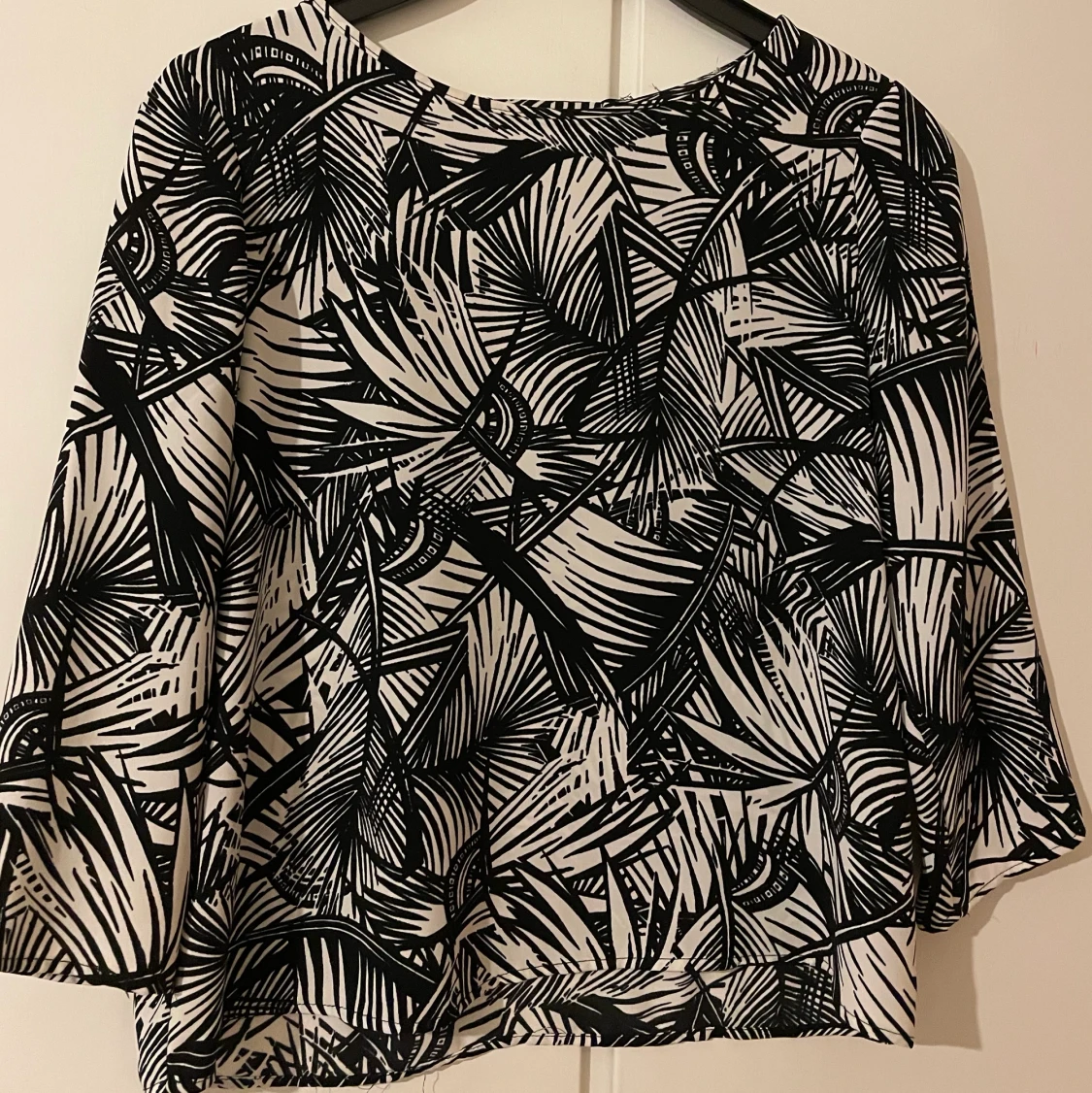 Snygg blus med en öppning i ryggen. Vet inte märke eller storlek då den är köpt second hand men passar XS-M