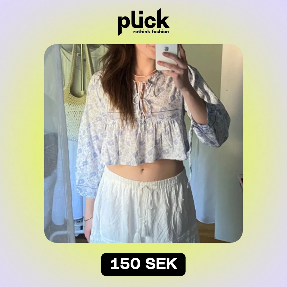En unik blus som är sydd från en Zara Home-klänning köpt på Sellpy. 🌼☺️ Lite Mamma Mia vibes!! Croppad modell med två rosetter vid bysten samt på ärmarna. Superfint skick!