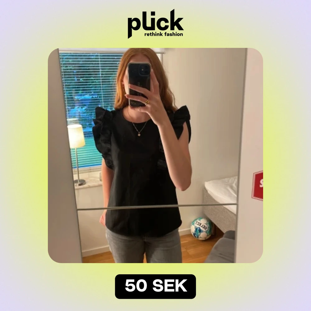 Söt svart blus med volanger från Shein. Fint skick. Hör av er för fler bilder🥰