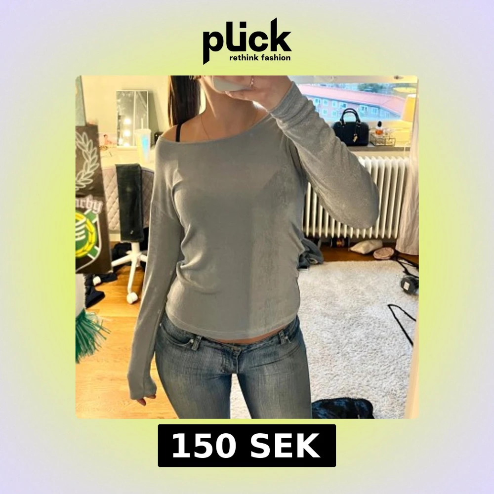 Såå fin skrimrig långärmad tröja!! Färgen är som sagt lite glittrande och en blandning av blå och grå💓Så söt att ha lite off shoulder!