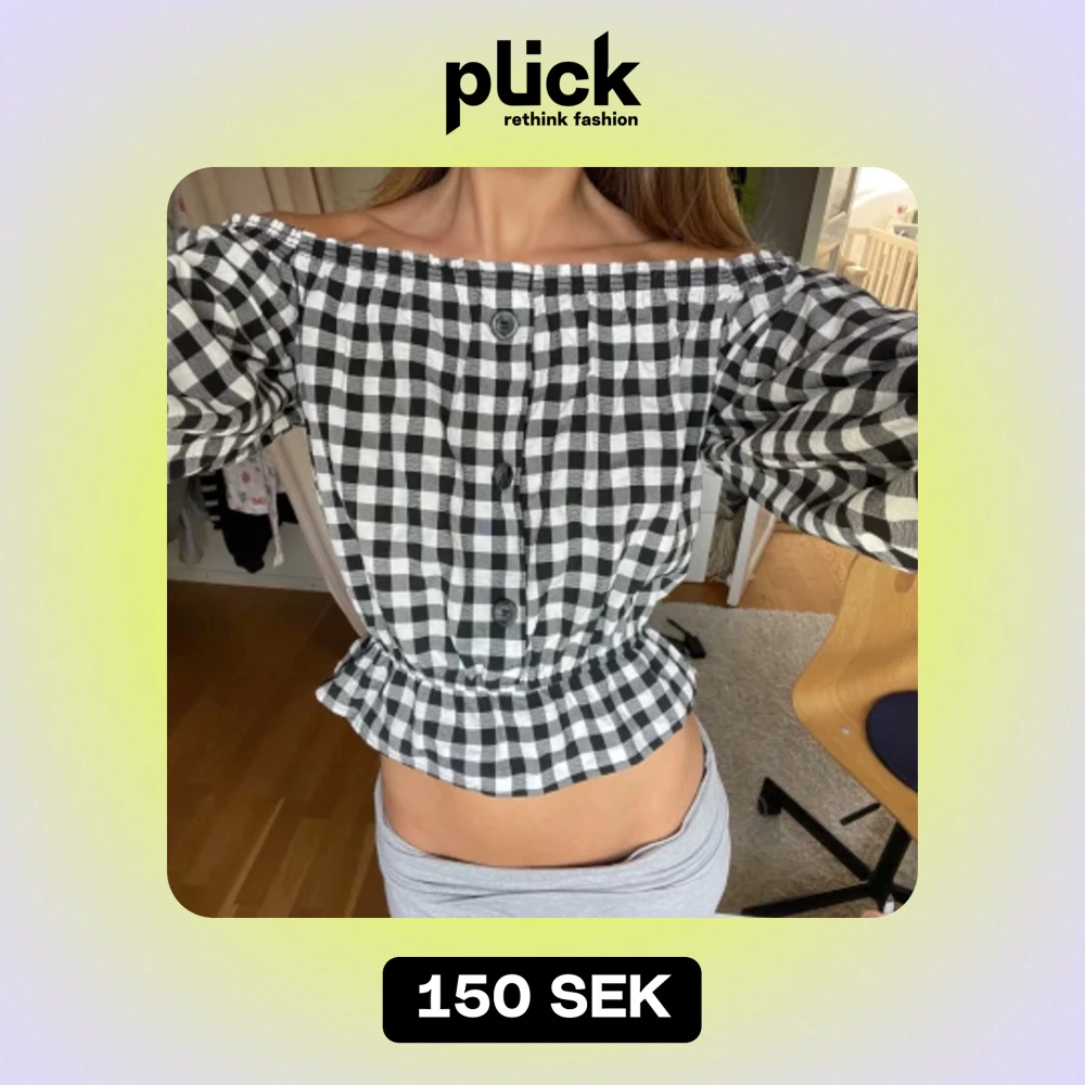 Så snygg rutig topp från hm!!! Aldrig använd, är perfekt nu till höstkvällar. Off shoulder med knappar i mitten som en cool detalj! Älskarrrrrr☁️🖤