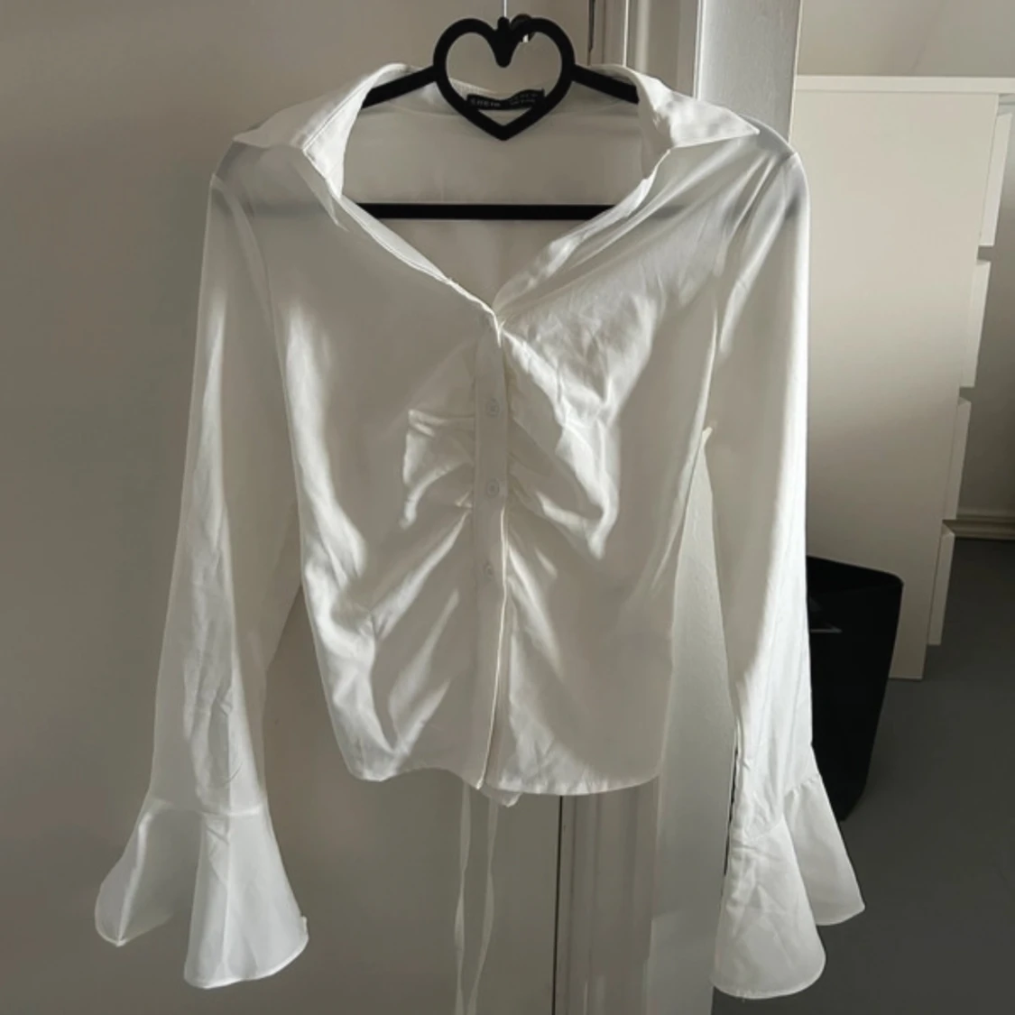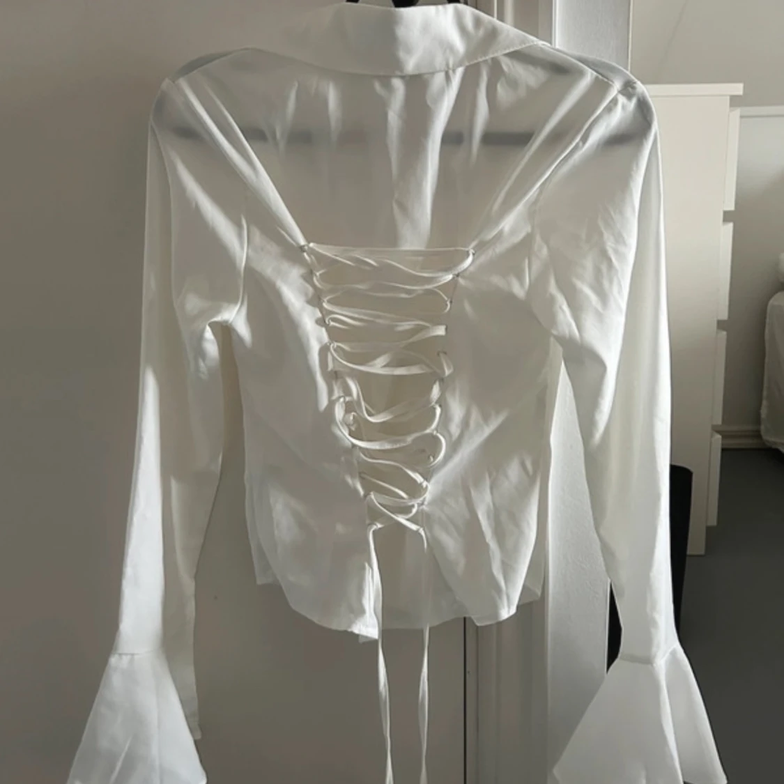 Aldrig använd. Lite scrunch där fram och band i ryggen som ger väldigt fin figur. Storlek XS men passar också S