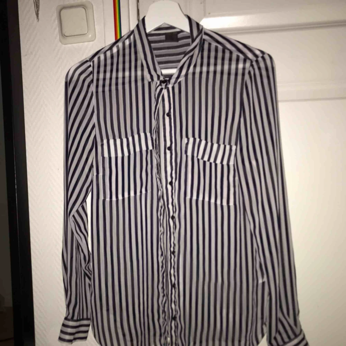 Svart-och-vit randig blus i genomskinligt tyg Köparen står för frakt