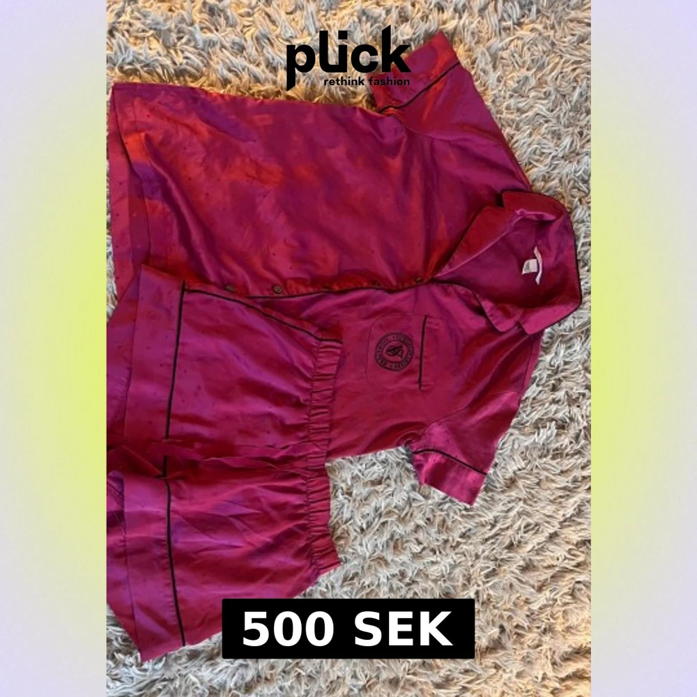 Snyggt mörkrosa satin set från Victoria's Secret Signature med svarta detaljer och diskret prickmönster. Shortsen har elastisk midja och en mjuk, glansig finish som känns lyxig. Perfekt för chill hemma eller som pyjamas. Matchande skjorta i samma material i nyskick. Kvitto finns köpt i nyc 2024
