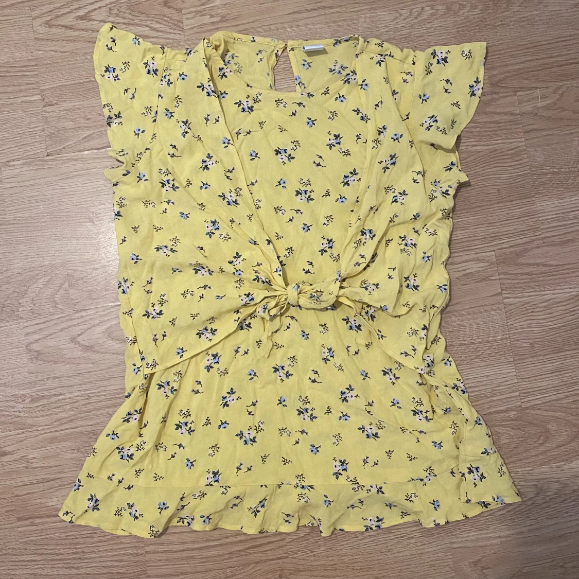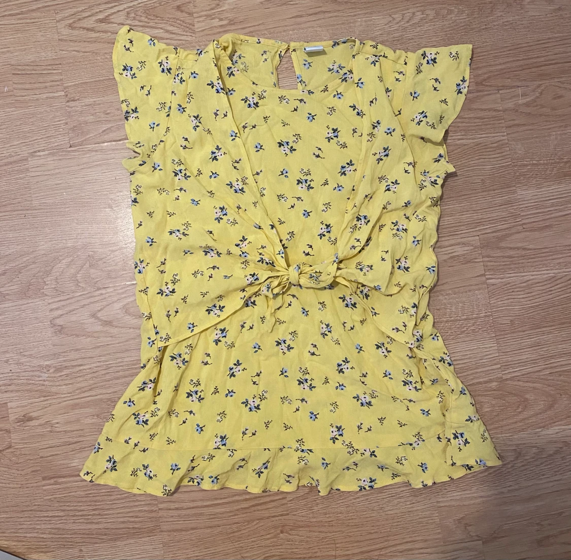 En supersöt gul blus med knytning i mycket bra skick/aldrig använt. Den är i storlek 170+ (barn) men passar mig som är XS/S.