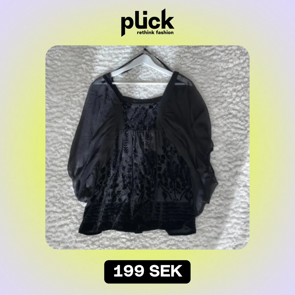 Jättesnygg och trendig svart blus. Detaljer, också i svart, men i annat material. Jätteluftig. Köpt för väldigt länge sedan för 350 kr, men aldrig använd.