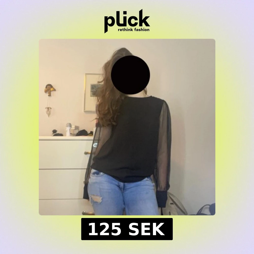 Snygg svart blus med transparenta, långärmade ärmar i mesh. Klassisk rund halsringning och en avslappnad men snygg passform. Passar till både jeans och kjol för en cool outfit som passar vid fest. ❤️