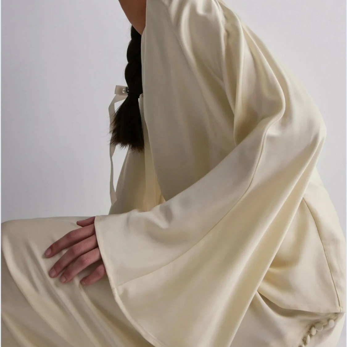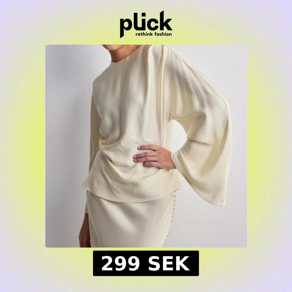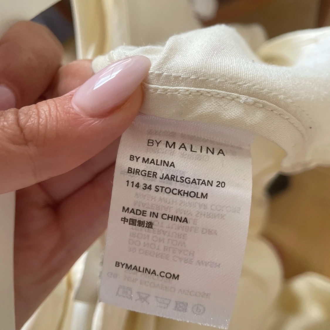 Satin blus cremefärgad från By Malina. Vida långa ärmar, rund halsringning. Lite sönder vid nacken men verkligen inget man tänker på när man bär den och kan åtgärdas enkelt. 💛 Strl XS men passar även S