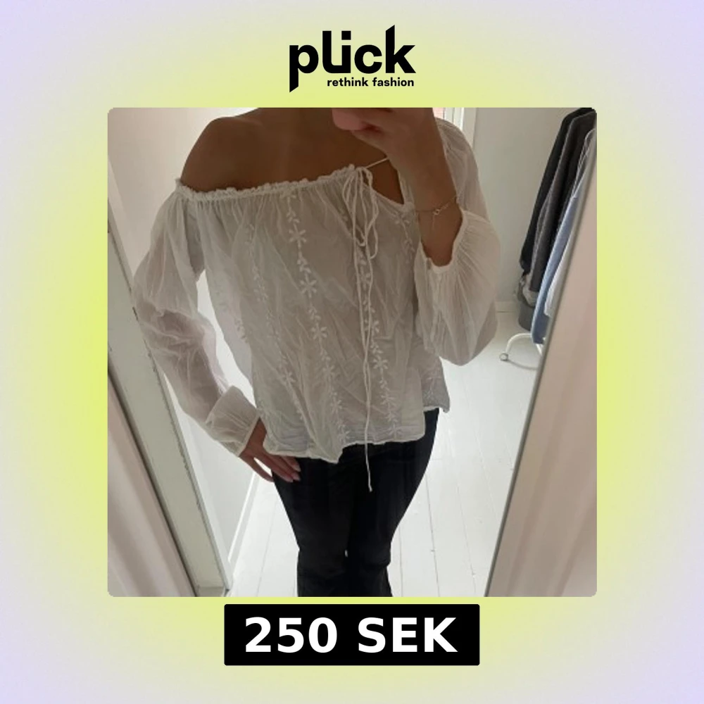 En super fin blus i storlek xs . Modellen är offshoulder och går att dra åt med snören. Den är broderad men fina blommor på.