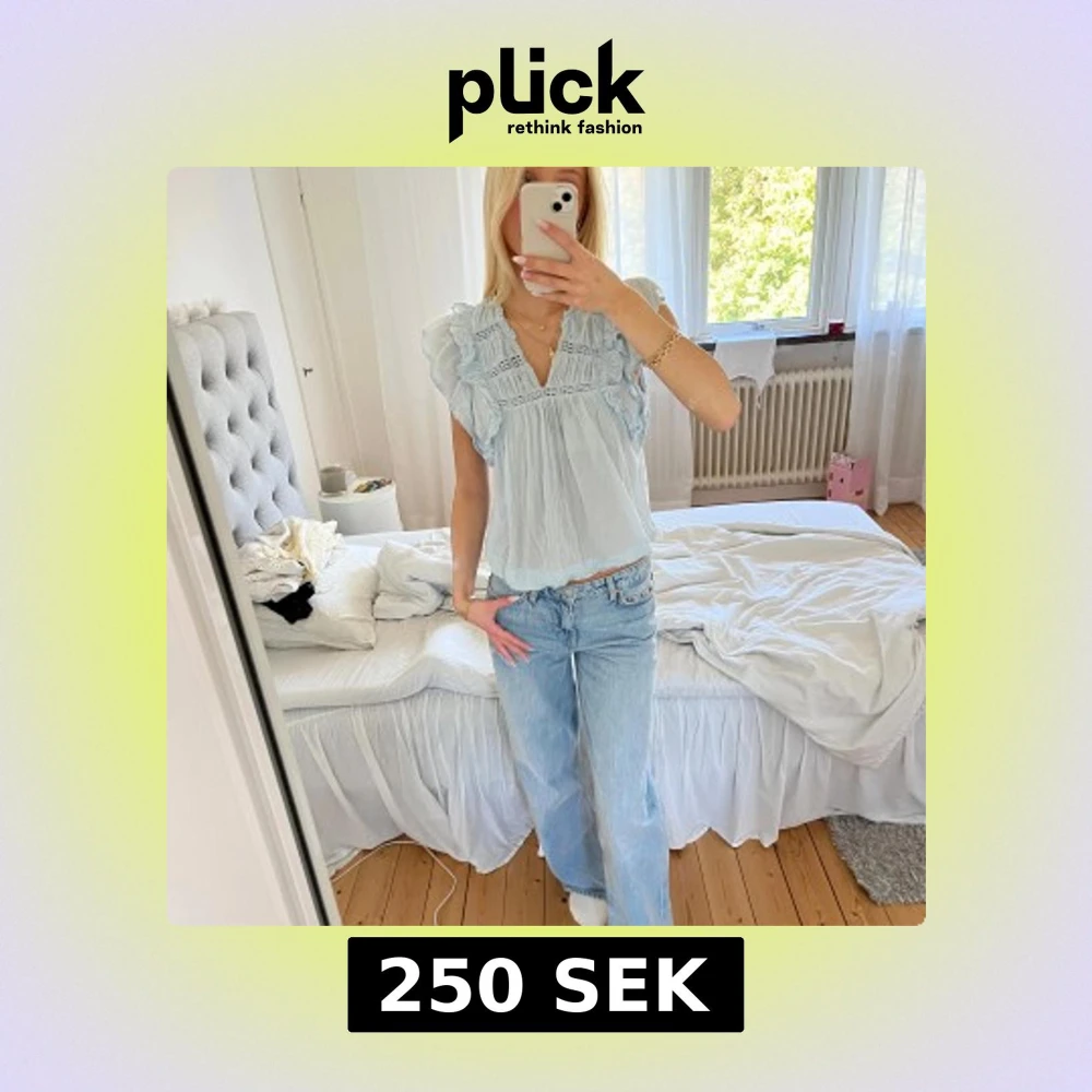 Jättefin kortärmad blå blus från Neo noir😋❤️