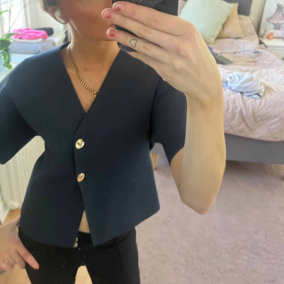 Super fin marinblå topp/kofta ifrån Zara, gott skick! ❤️Guldiga knappar!