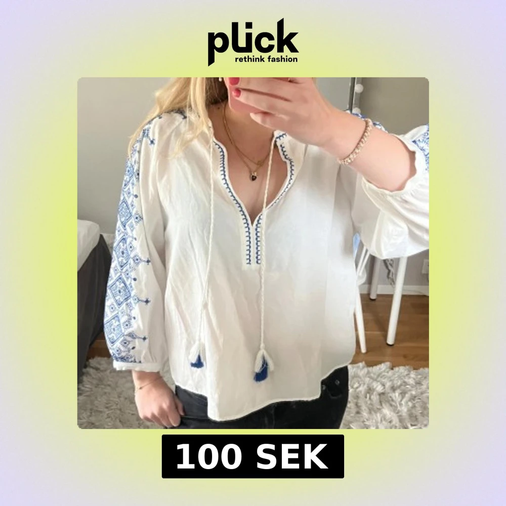 Vit blus med blåa broderier från Zara, använd väldigt lite 💙