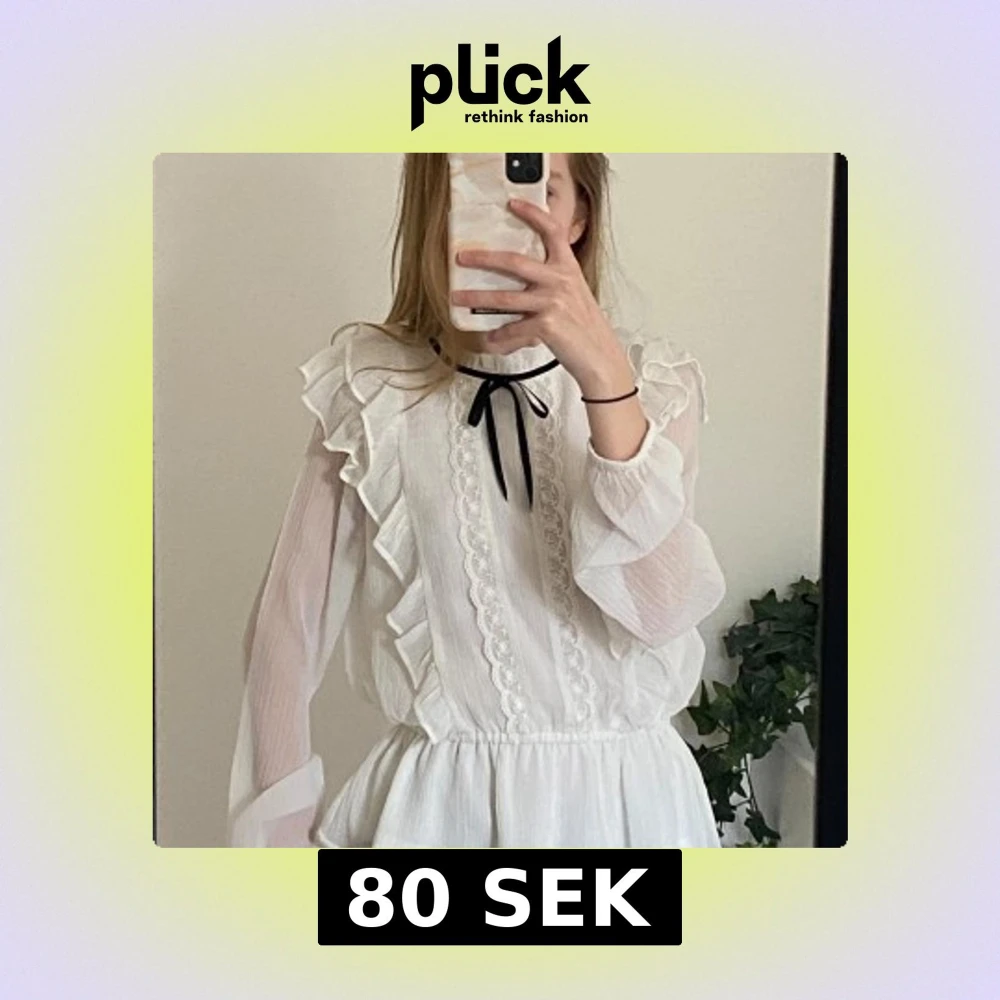 Fin spetsblus som är perfekt för en lite kyligare sommarkväll. Blusen har använts fåtal gånger och har inga defekter. Den är i storlek 152 och den svarta rosetten på kragen är borttagbar.