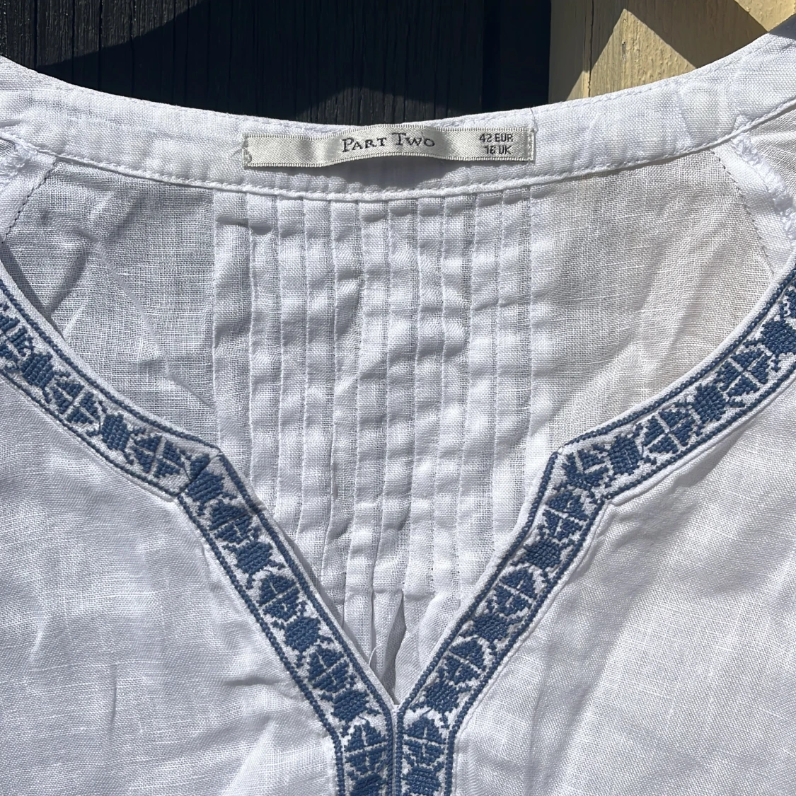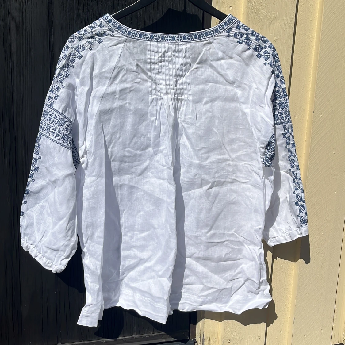 Fin somrig blus med mörkblå detaljer. Fint skick.