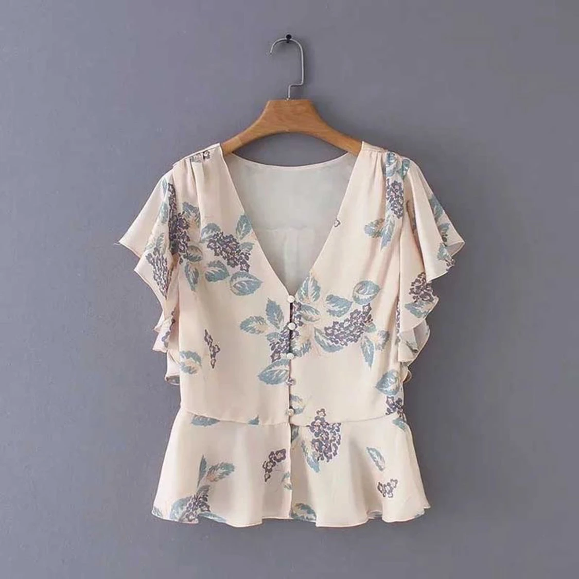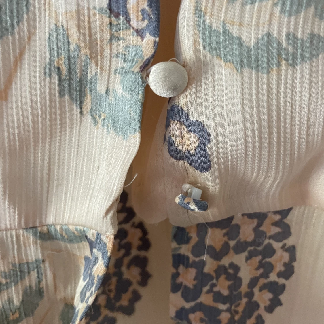 Väldigt söt blus i blommönster. Använts några gånger på middagar och fått flera komplimanger. Sista bilden visar en liten defekt vid en av knapprna. Det går att sy fast en flärp så man kan stänga den men inget jag hunnit göra..🙃🥰🤝🏼