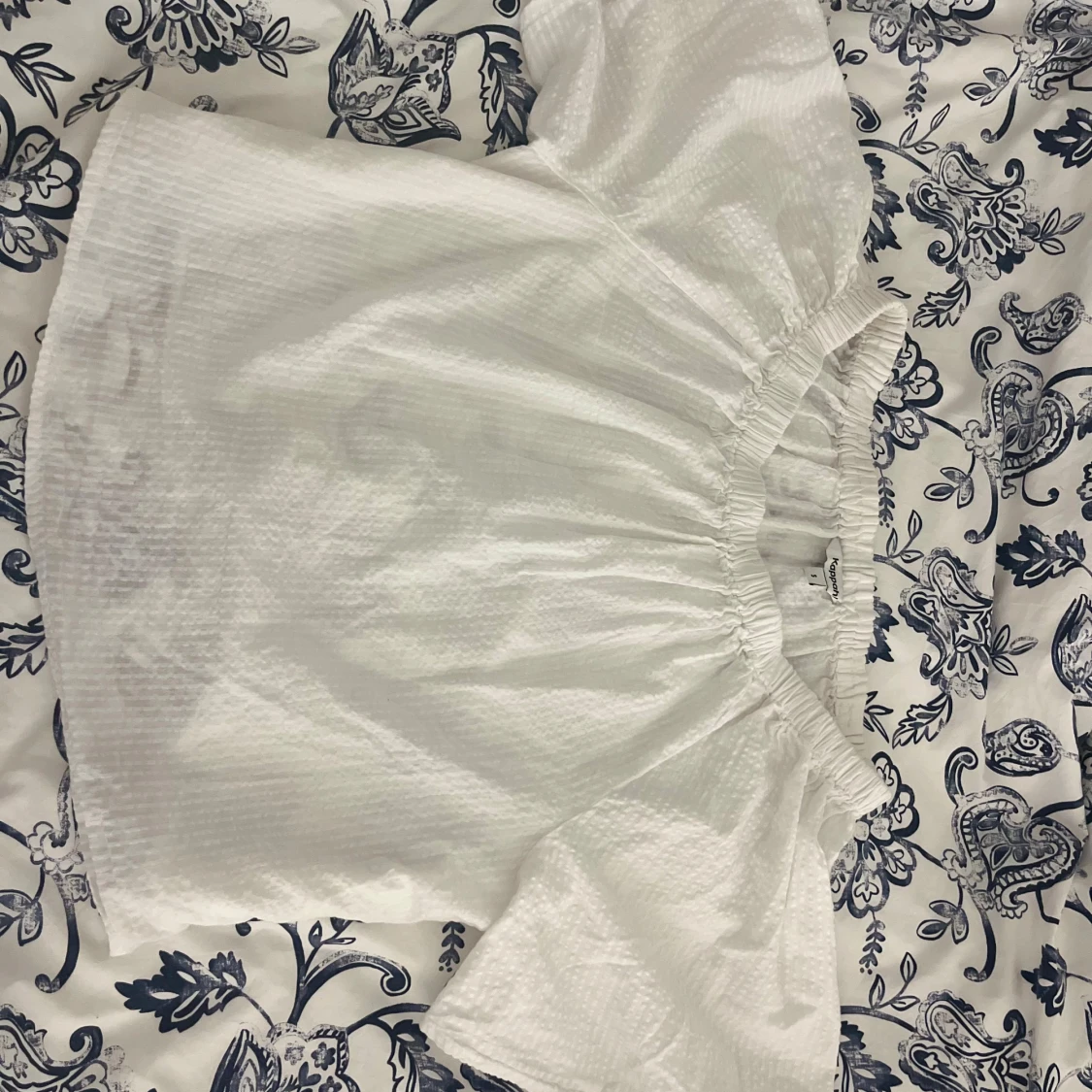 Jättefin sommrig vit offshoulder blus köpt på Kappahl. Är använd endast en gång och är därför i nyskick, kan även skicka bilder om man vill se hur den ser ut på💕