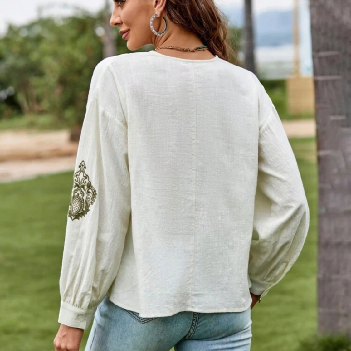 Jätte fin o skön sommrig blus passar till allt med fina gröna detaljer, lös passning och luftigt material