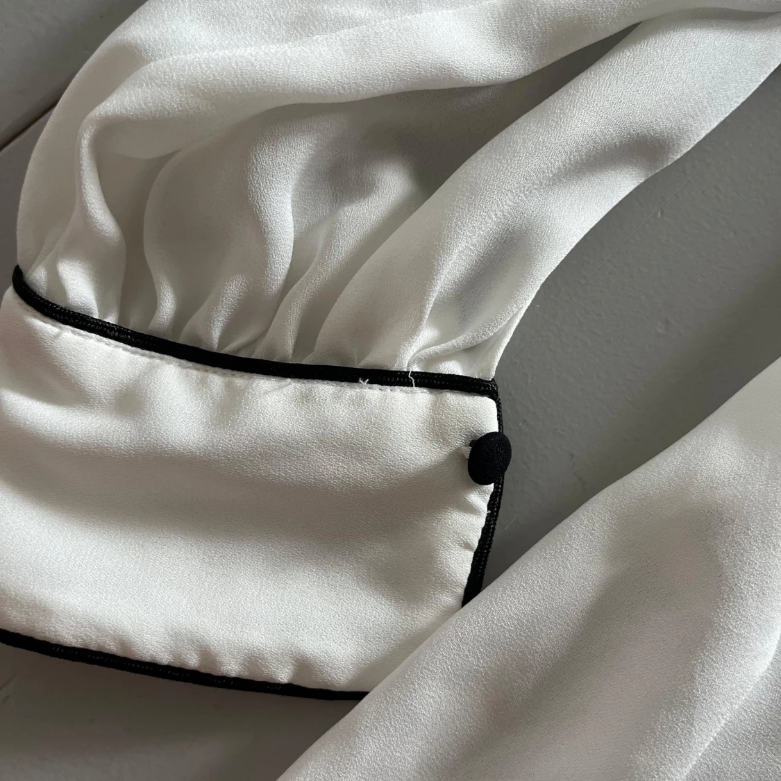 Söt blus från Mango i storlek S. V-ringning vid bröstet och fina svarta detaljer och knappar längst ut.