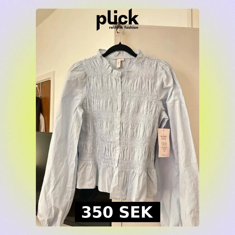 Fin Nelly blus - Säljer denna oanvända sommarblusen från Nelly med prislappen kvar🤍🩵. Storlek S men passar även M/L. Nypris: 399 kr men säljer för 340kr. Köparen står för frakt. 📦