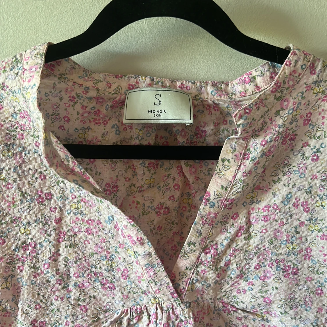 Så fin tröja från neo noir med blommigt mönster och ruffiga ärmar 🤍🤍i nytt skick och inga defekter ☺️