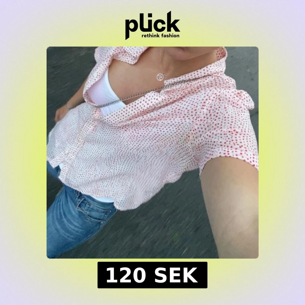 Säljer en söt vit blus med röda prickar. Blusen har korta ärmar och en klassisk krage. 💕