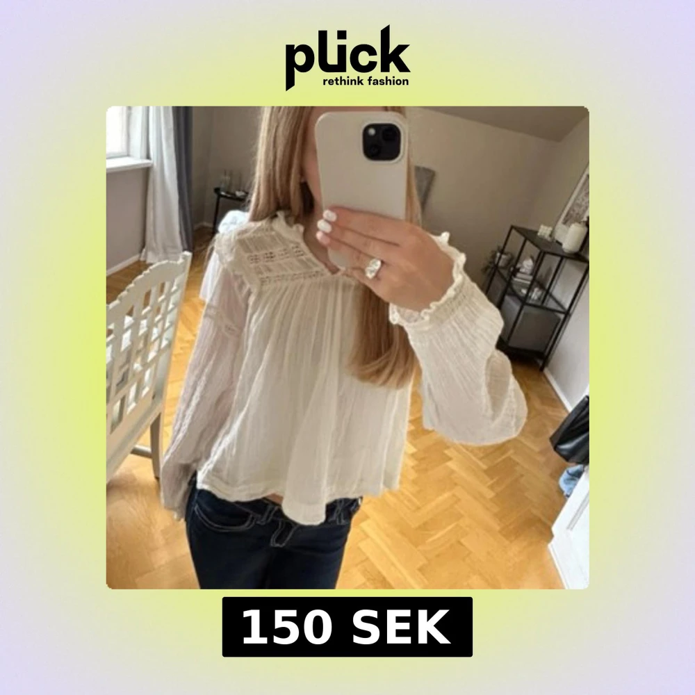 Jättegullig vit långärmad blus från Gina Tricot Finns inte i sortimentet längre Inga defekter som fläckar eller hål, jättebra skick! skriv för fler bilder💞barnstorlek 158/164 men sitter som en XS