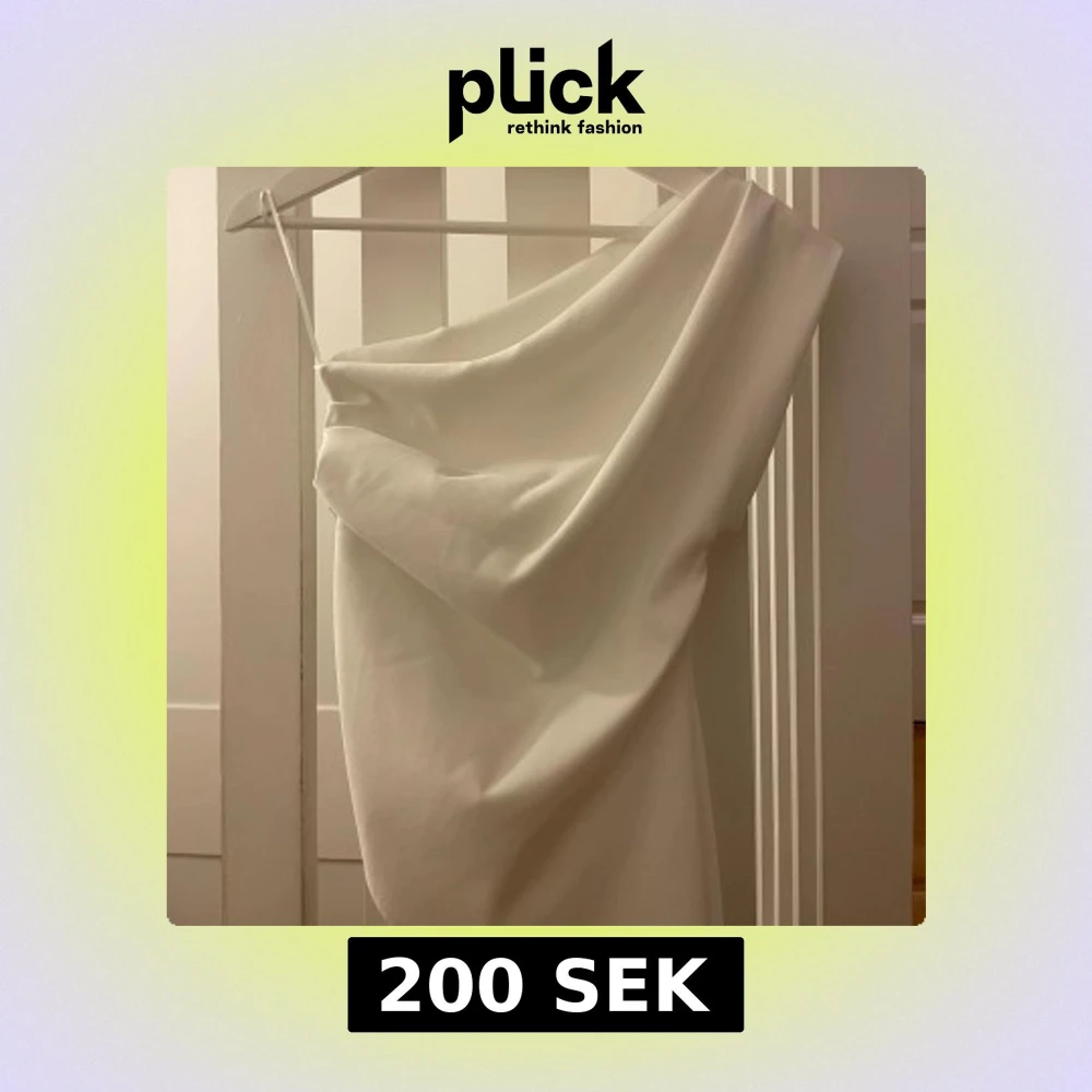 Supersnygg vit one shoulder blus från Zara med draperad design och asymmetrisk axel. blusen har en stilren look med smal axelrem och är tillverkad i ett slätt tyg som ger en elegant känsla. Perfekt för dig som vill sticka ut med en modern och trendig stil.