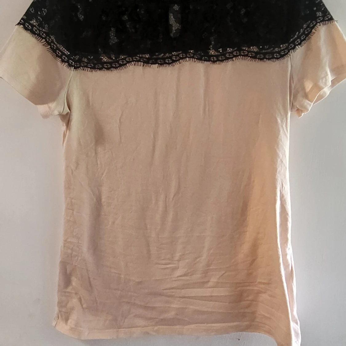 Mycket fint skick!💝 Anänd ensast en gång men är som ny💗 Jättefin tröja som passar lika bra til vardag som fest. Passformen är som en vanlig tshirt och det vackra spetstyget vid bysten ger ett elegant uttryck💞