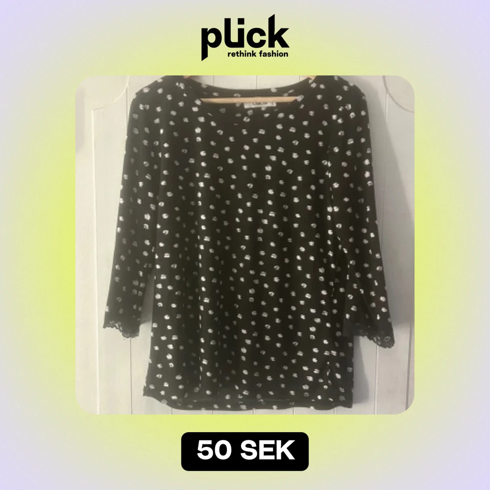 Svart/vit tröja, trekvarts ärmar med spets längst ut. Strlk L