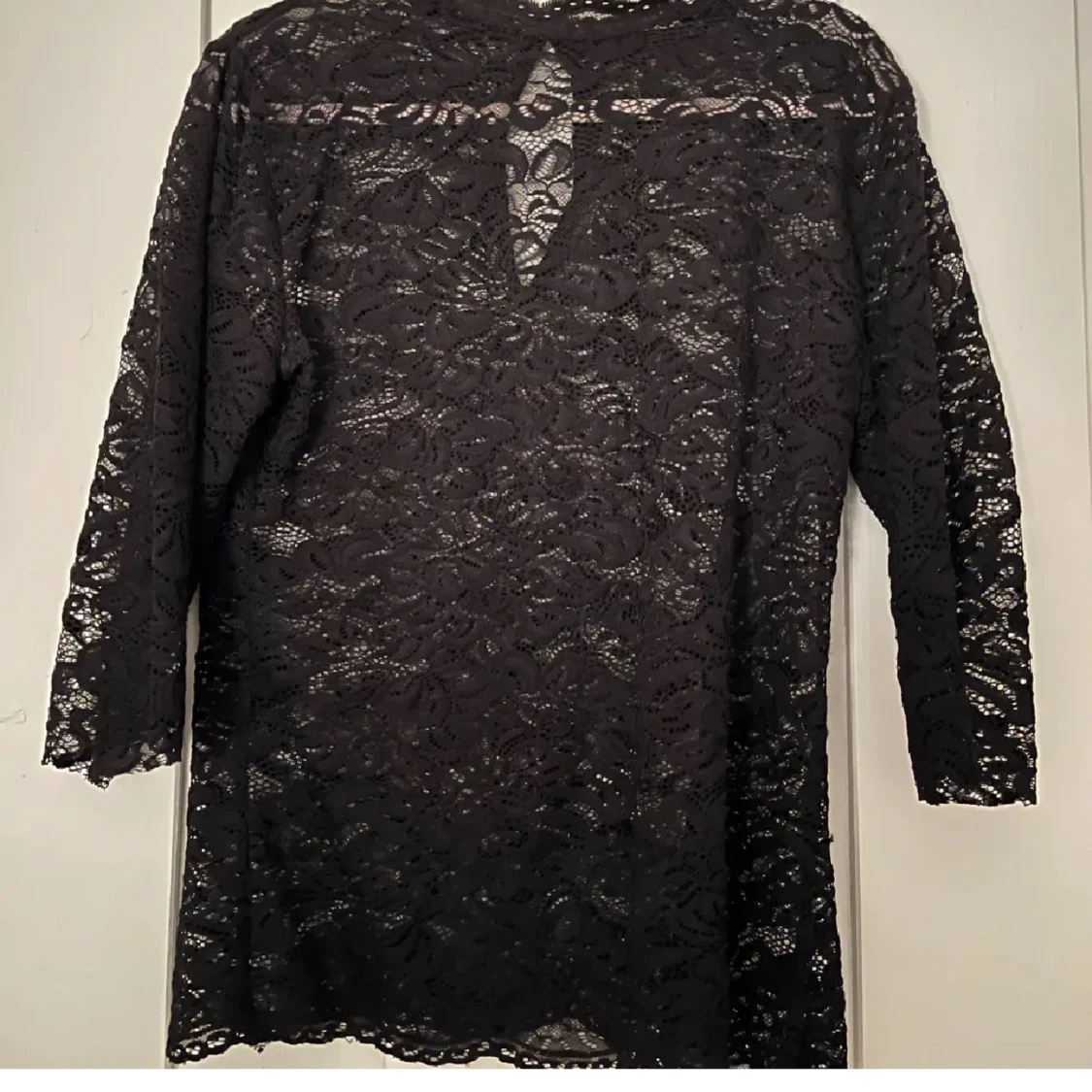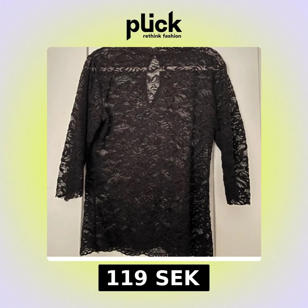 En svart spets topp med trekvartsärmar i strl M. Bra skick! Perfekt till fest!