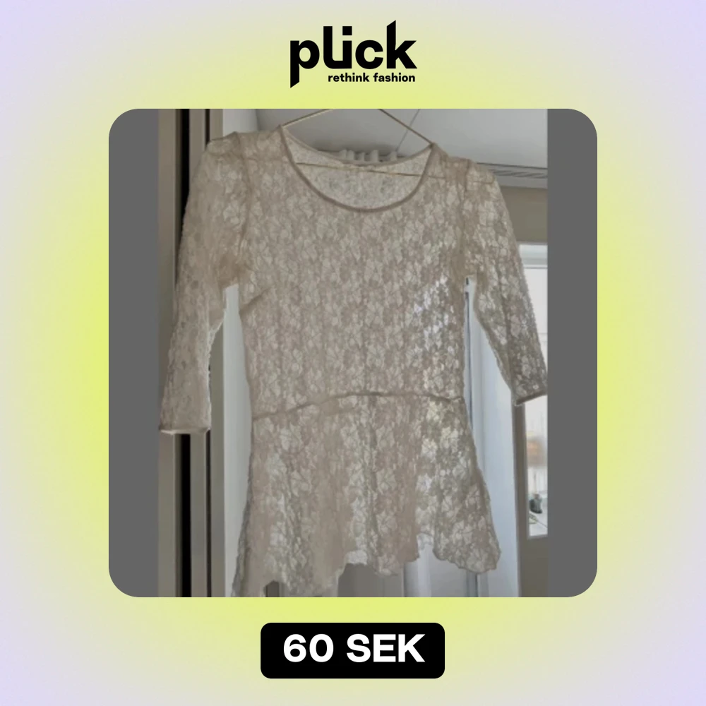 Supergullig tröja i spets 🪩 köpte den nyss utan att testa den innan och tyvärr var den lite för liten för mig. Stl 32/34 men skulle säga att den passar 36 också 💖köparen står för frakten!