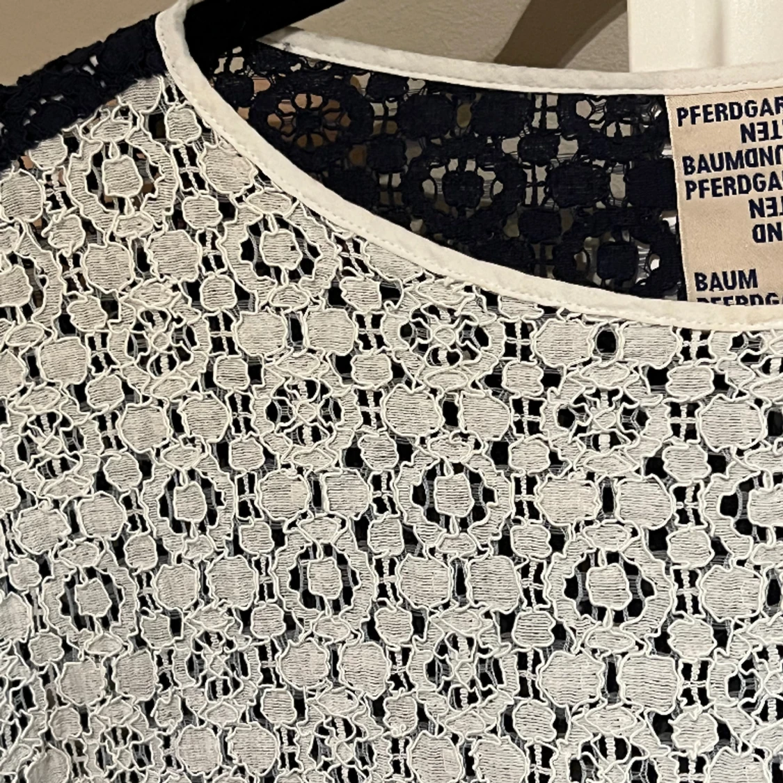 Spets T-shirt från baum und pferdgarten i toppskick, unik med vit framsida och svart baksida. Den skulle passa xs-m beroende på vilken passform man är ute efter! 🤙🏻🪩✨ säljer pga full garderob😅 Hör av dig ang frågor!