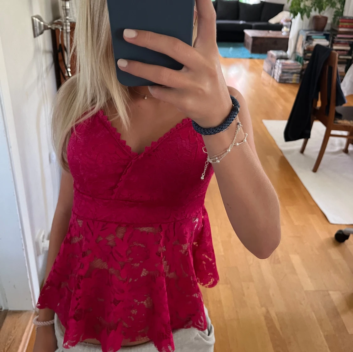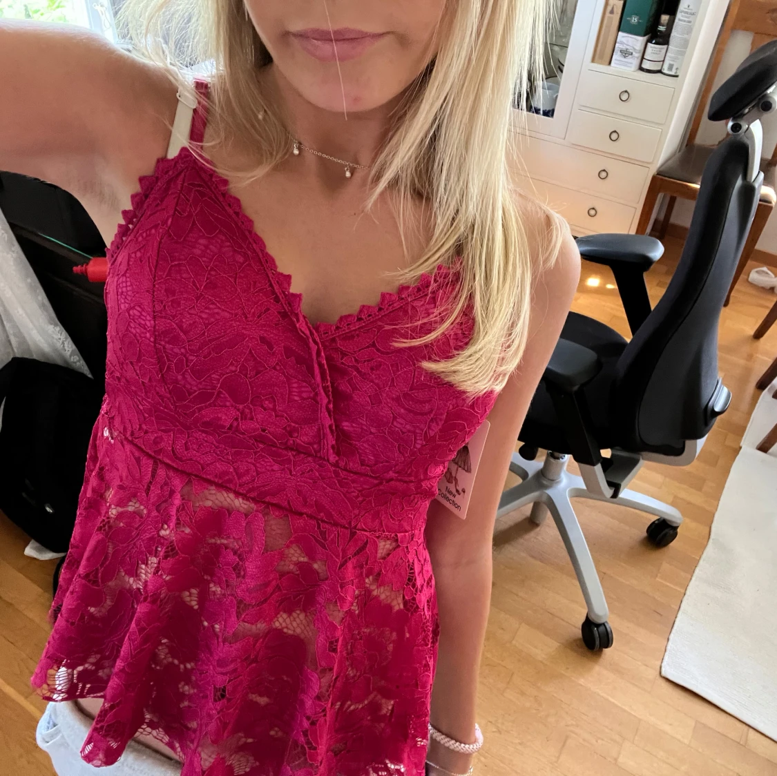Rosa spetstopp från en liten butik i Öland. Storlek XS/S. Aldrig använd och prislapp kvar