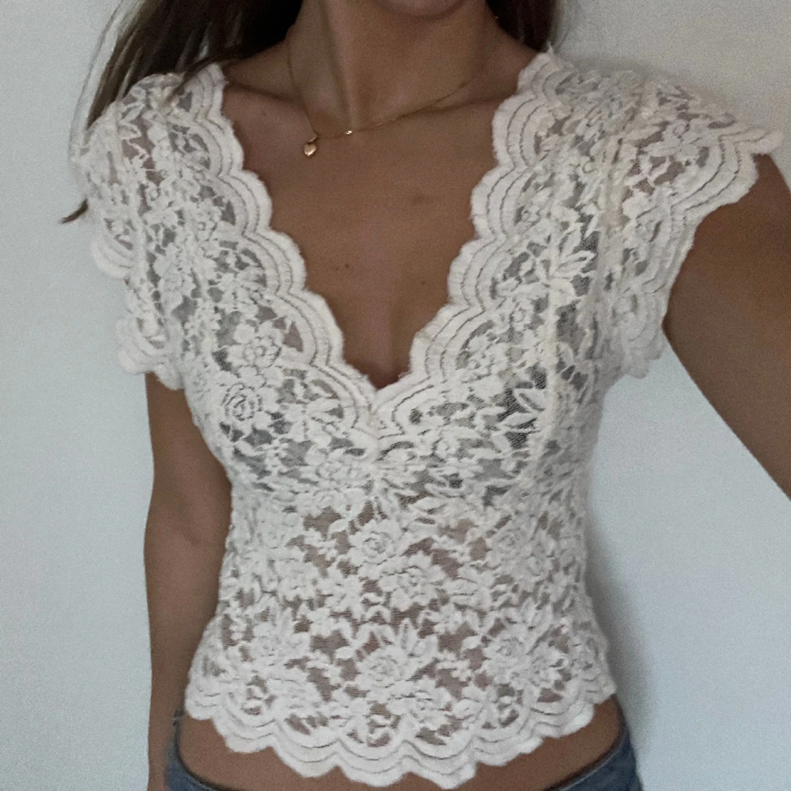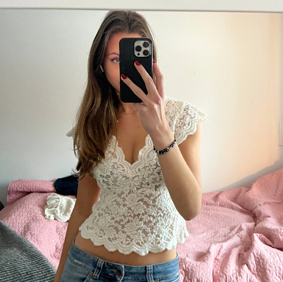 Populär Spetstopp från zara. Så snygg men kommer inte till användning. Storlek L men passar s-l (har vanligtvis 36-38).