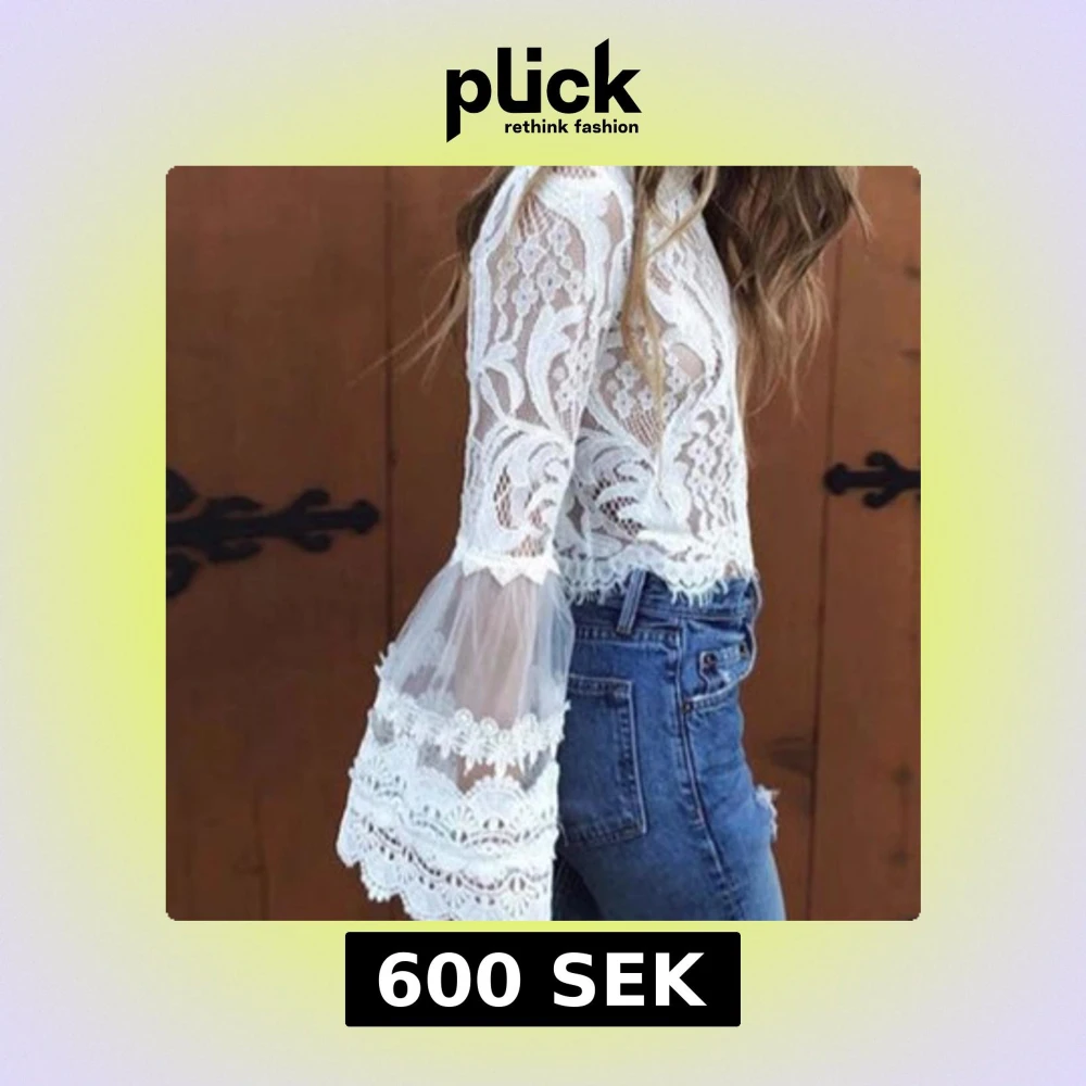 Totalt crazy snygg spetsblus med volanger på armarna! Så fin till sommarens fester och till ett par jeans. Färg ljus ljus aprikos så fin till solbrännan! Toppen är i fint skick endast provad. 🥰💕