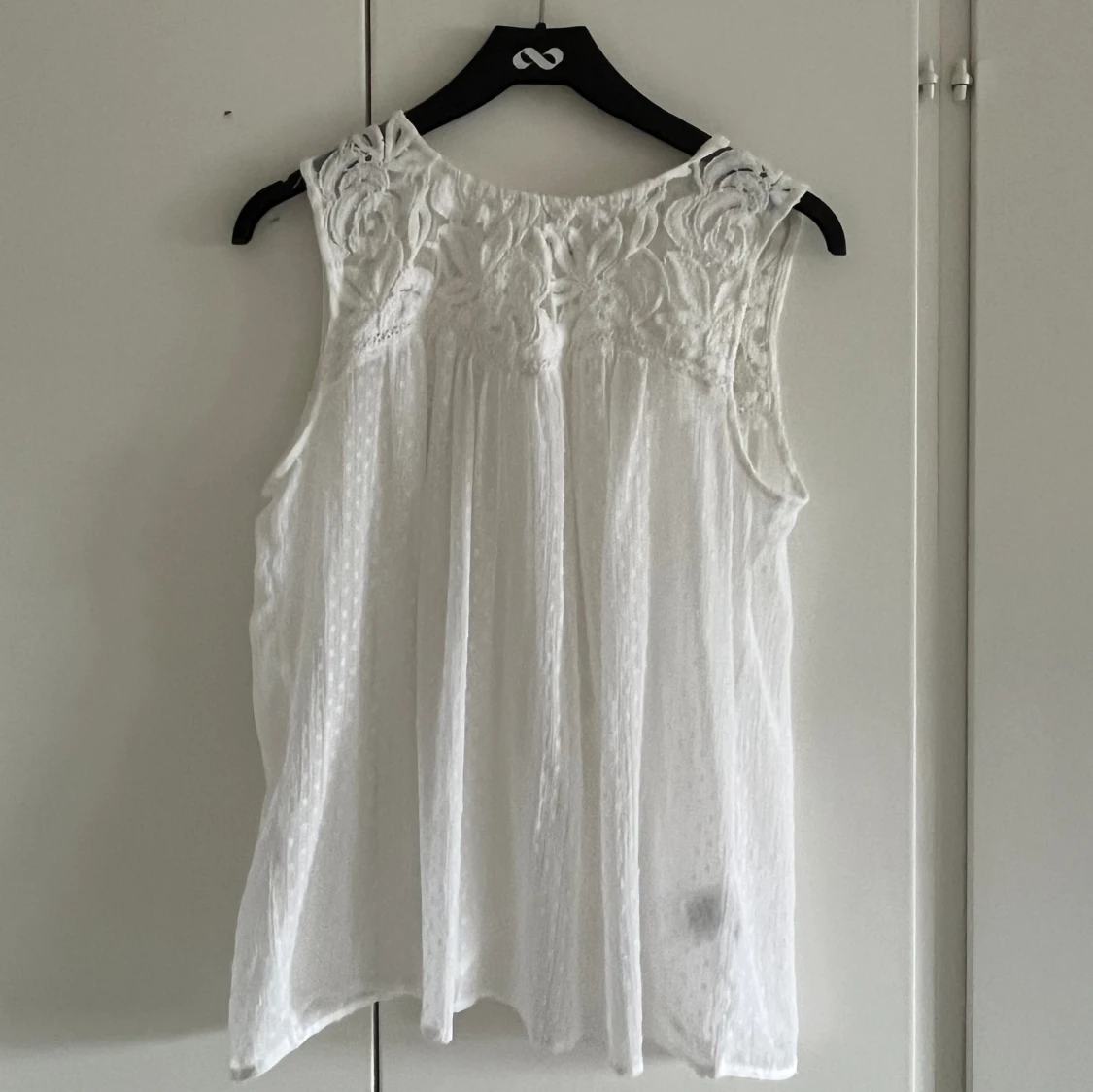 Ett vitt spetslinne som är perfekt till sommaren! Passar storlek s - L, och den är från märket vintage stories 🩷