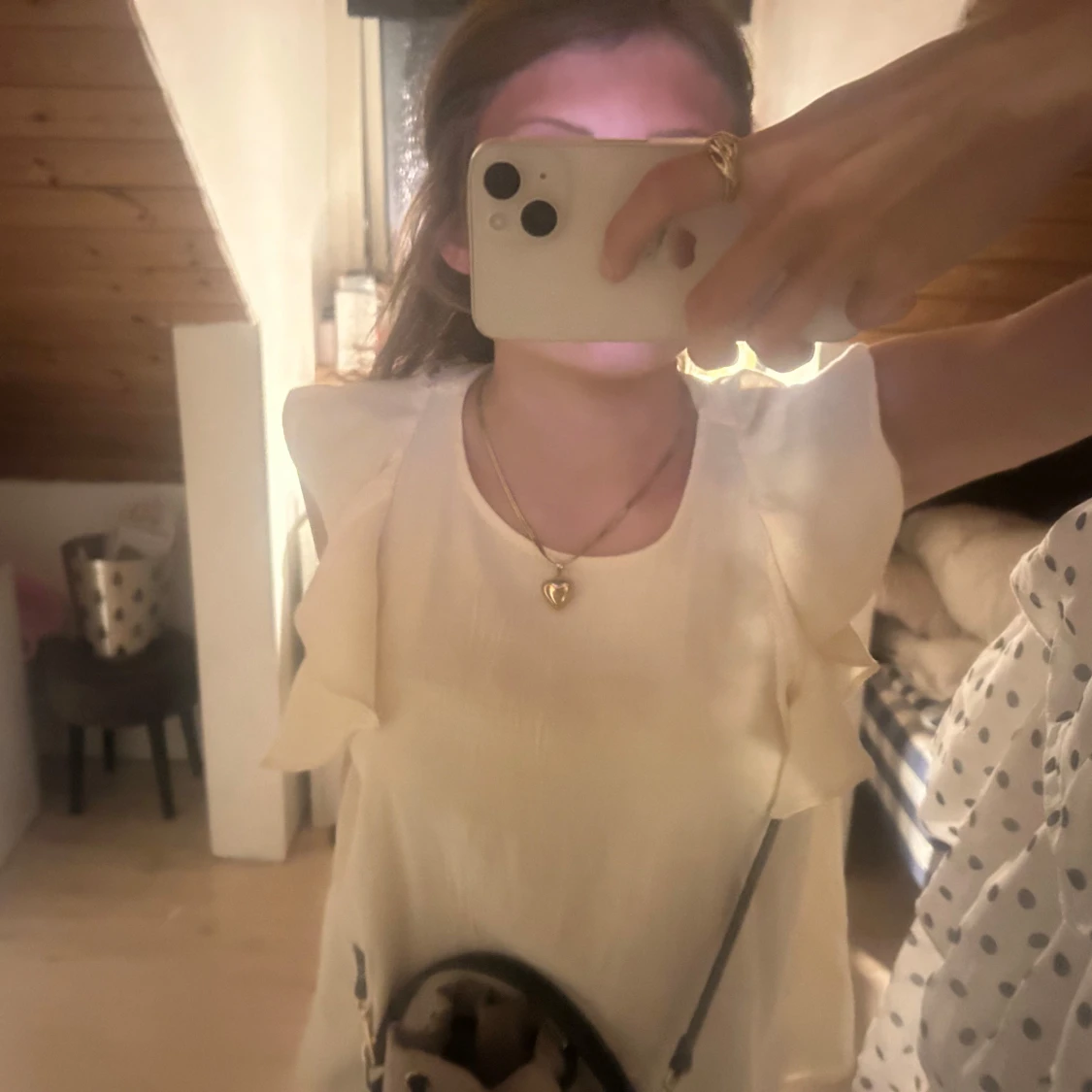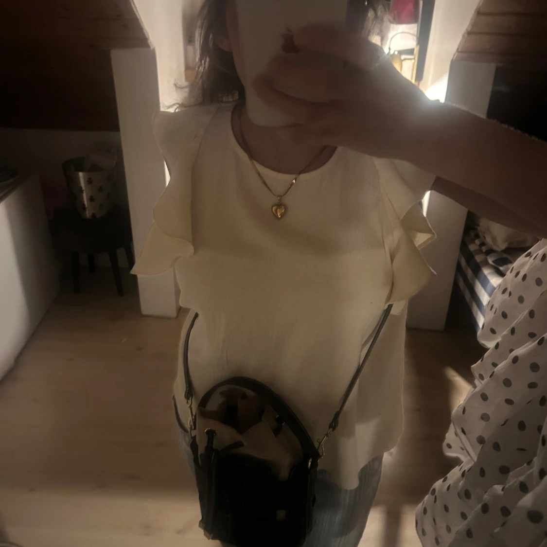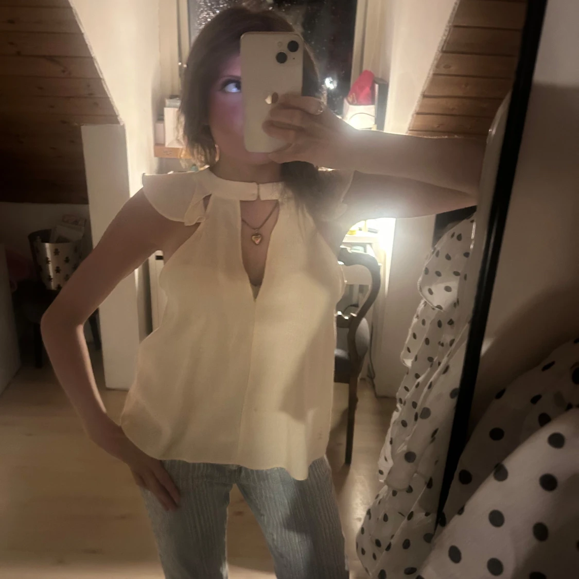 Supersöt ljusgul blus med volangdetaljer på axlarna. Går att ha på båda sätt!! Perfekt för sommar men också vardag , använd 3ggr. finns ej att köpa i butik
