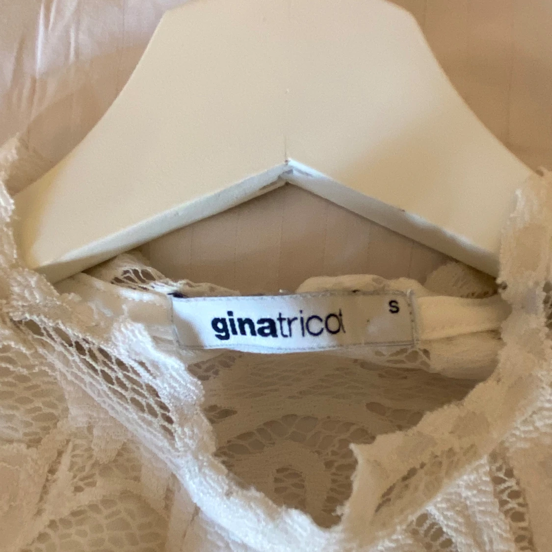 Superfin spetströja från Ginatricot i strl S. Utsvängda ärmar och supergullig. Den är dubbeltygad fram men har bara spets i ryggen 🙏🏼🤍