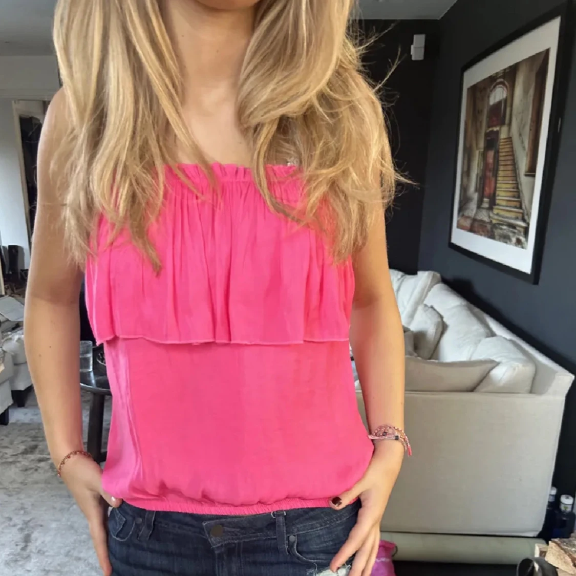 Säljer denna superfina rosa topp som är köpt här på plick innan, kommer inte till användning💞