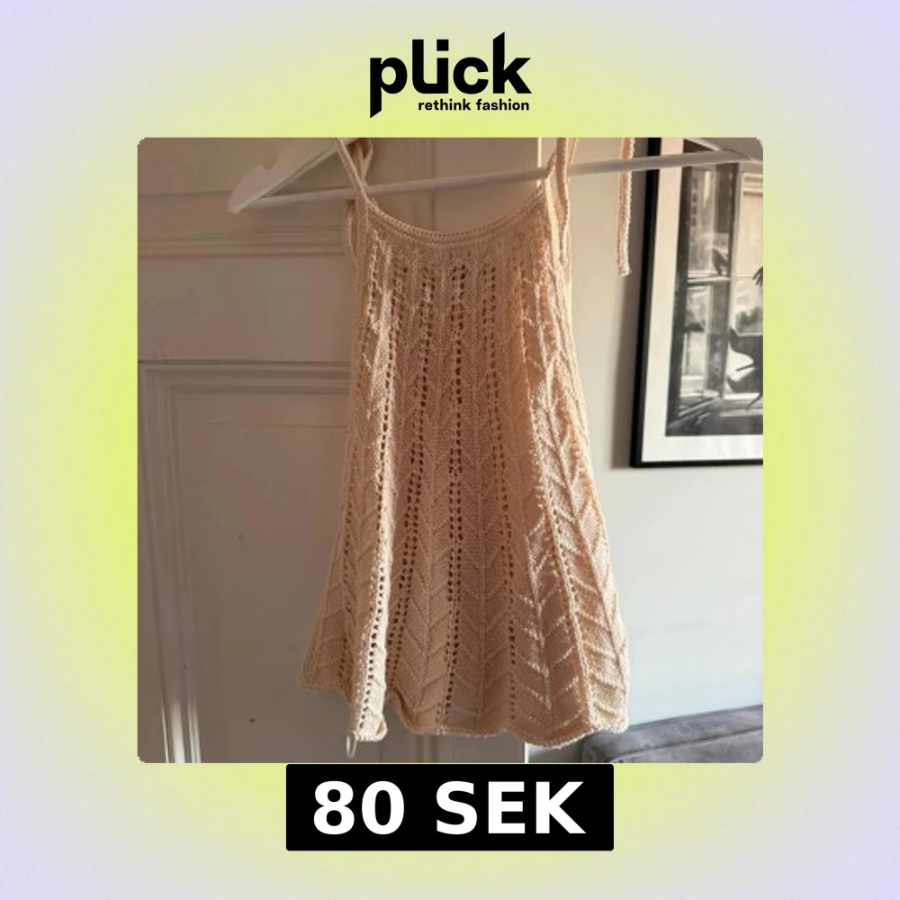 Supersöt stickad topp i beige med smala axelband och vackert hålmönster.